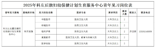 2.見習單位:科左后旗婦幼保健院。