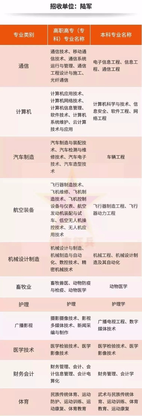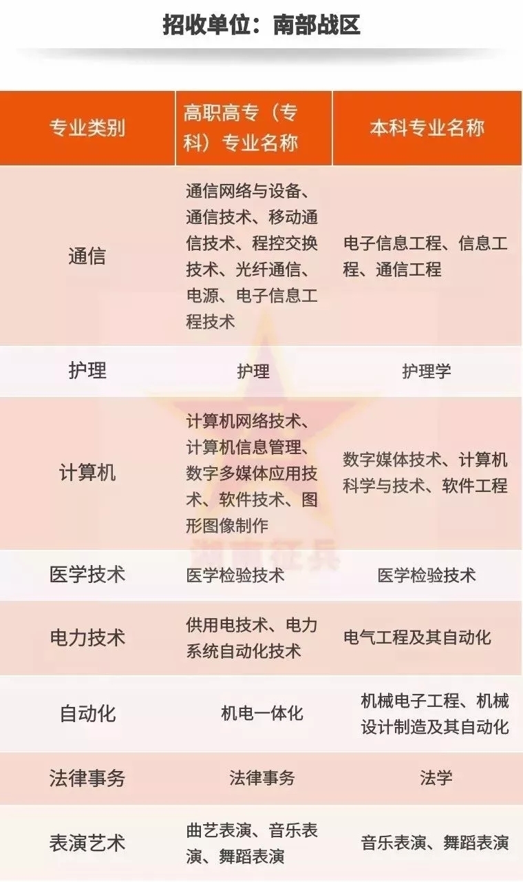 今天由湖南省政府征兵辦公室推薦的文章,所列專業(yè)僅在湖南省招生,其他省區(qū)我們將陸續(xù)公布。