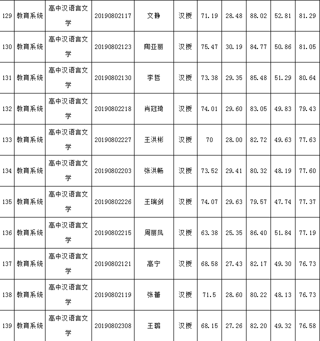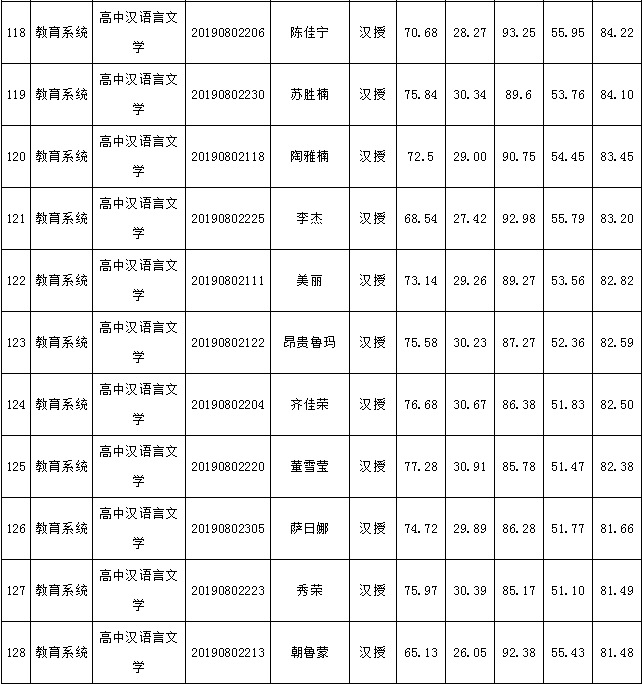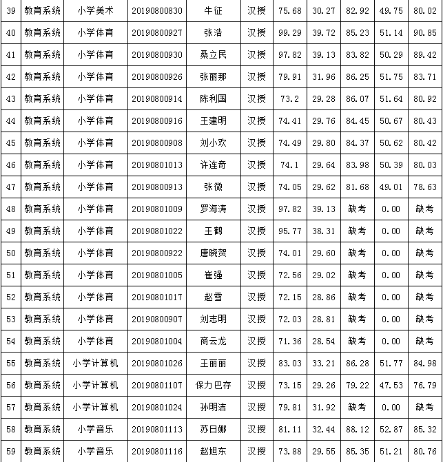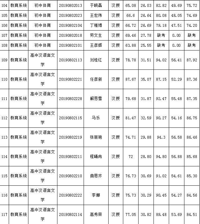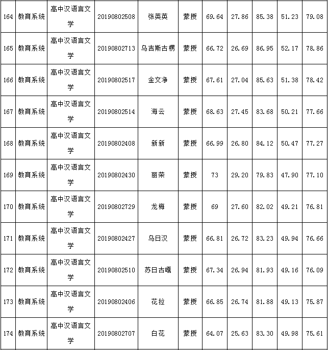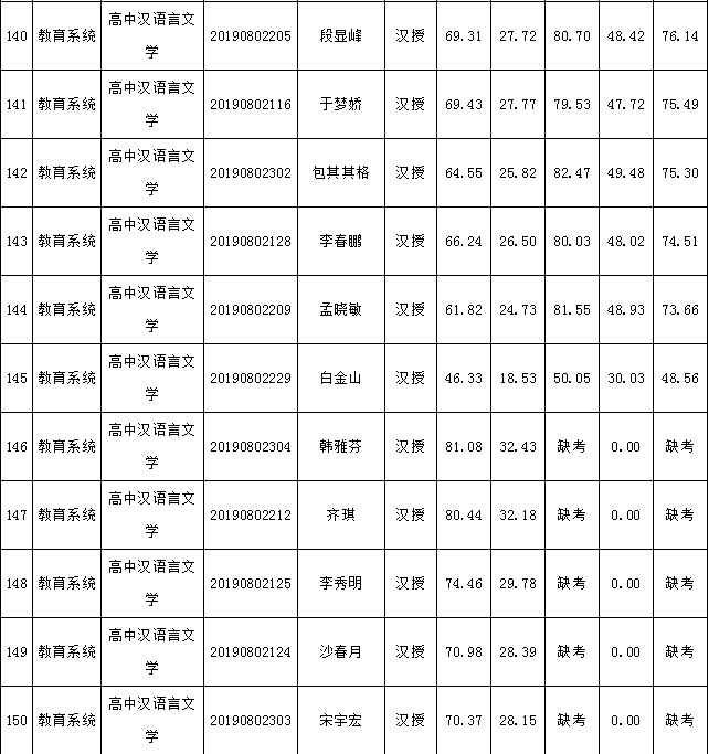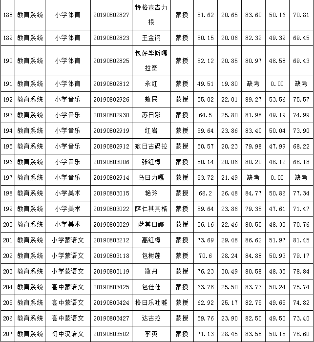 2019年庫(kù)倫旗公開(kāi)引進(jìn)專(zhuān)業(yè)技術(shù)人才進(jìn)入面試人員總成績(jī)公告如下: