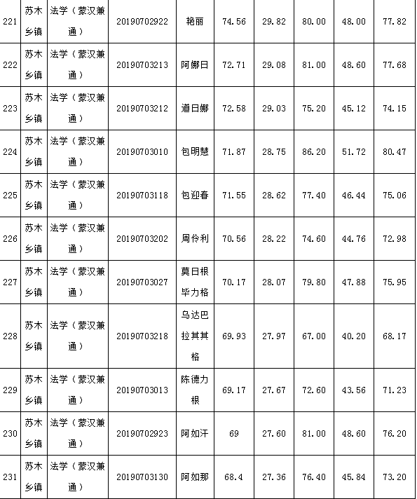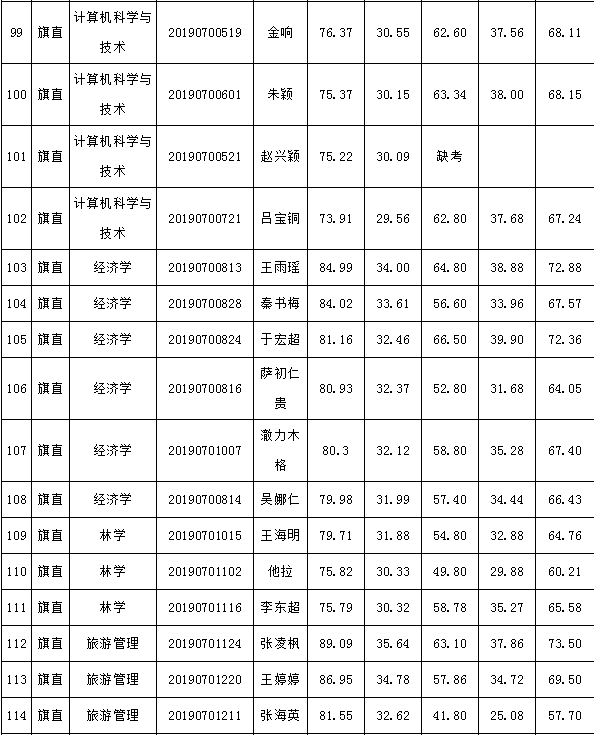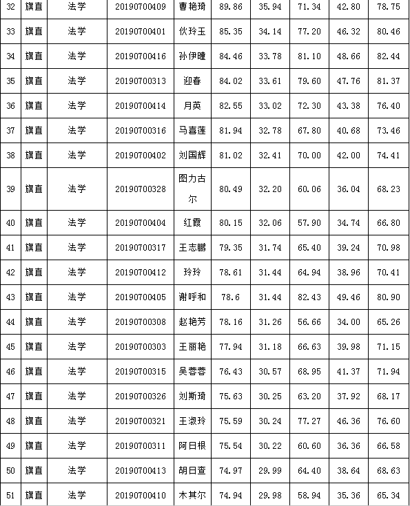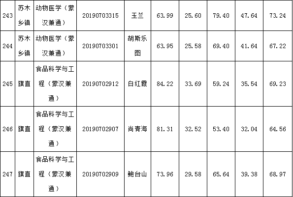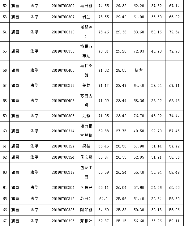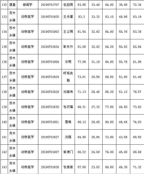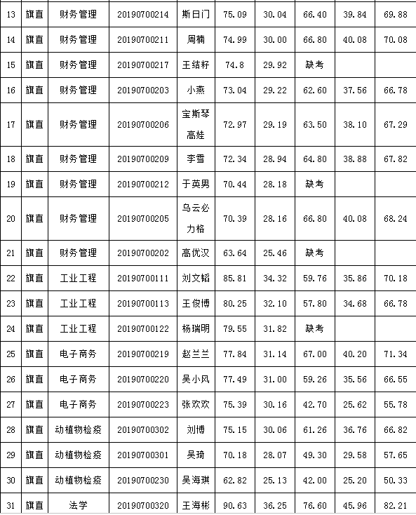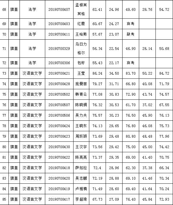 2019年庫(kù)倫旗公開(kāi)引進(jìn)專業(yè)技術(shù)人才進(jìn)入面試人員總成績(jī)公告如下: