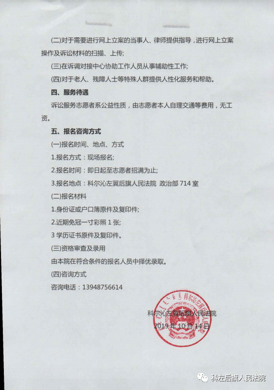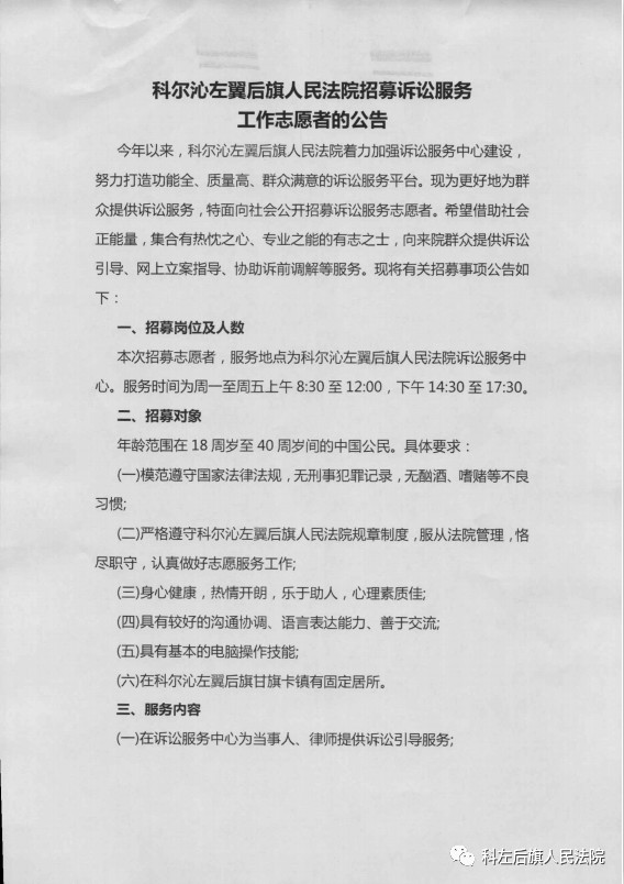 科左后旗人民法院招募訴訟服務(wù)工作志愿者