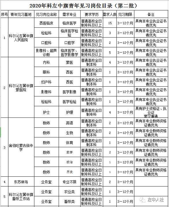 附件1:2020年科左中旗青年見習崗位目錄(第二批)