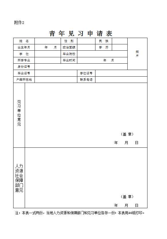 1.《青年見習(xí)申請表》(附件2),一式兩份;