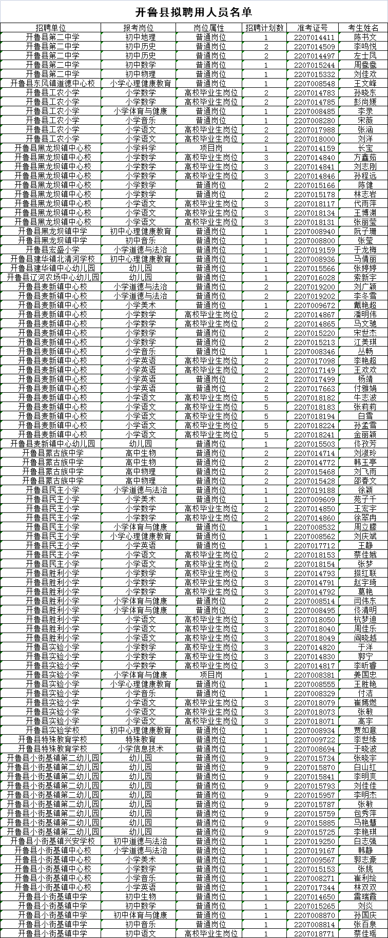 開魯縣擬聘用教師政審表