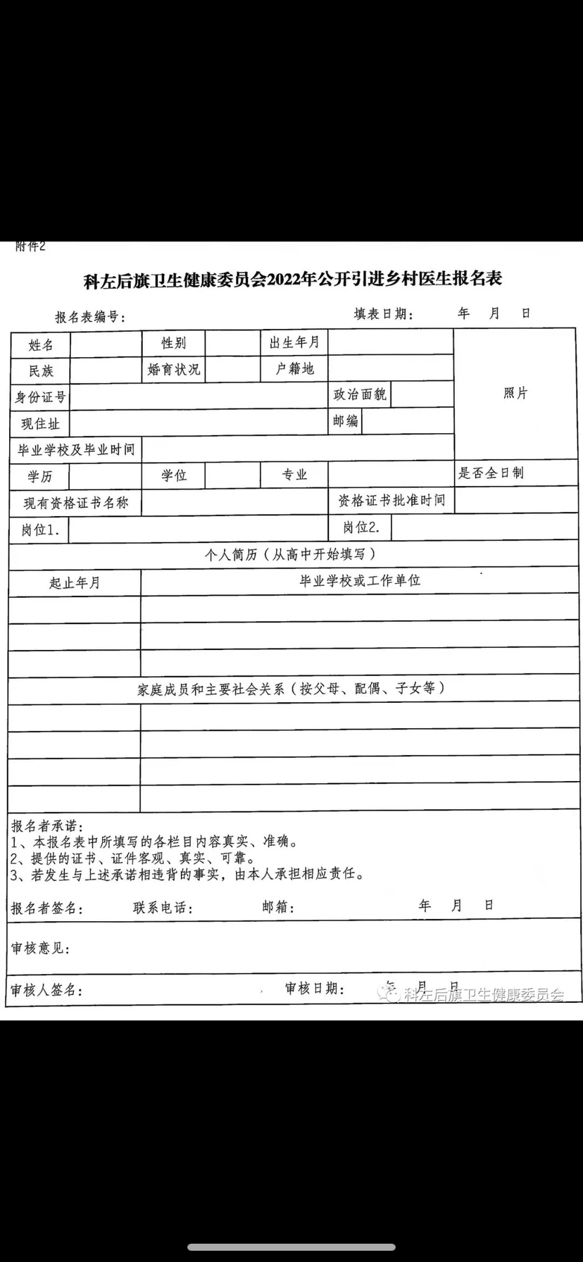 附件2:科左后旗衛(wèi)生健康委員會2022年公開招聘鄉(xiāng)村醫(yī)生報名表