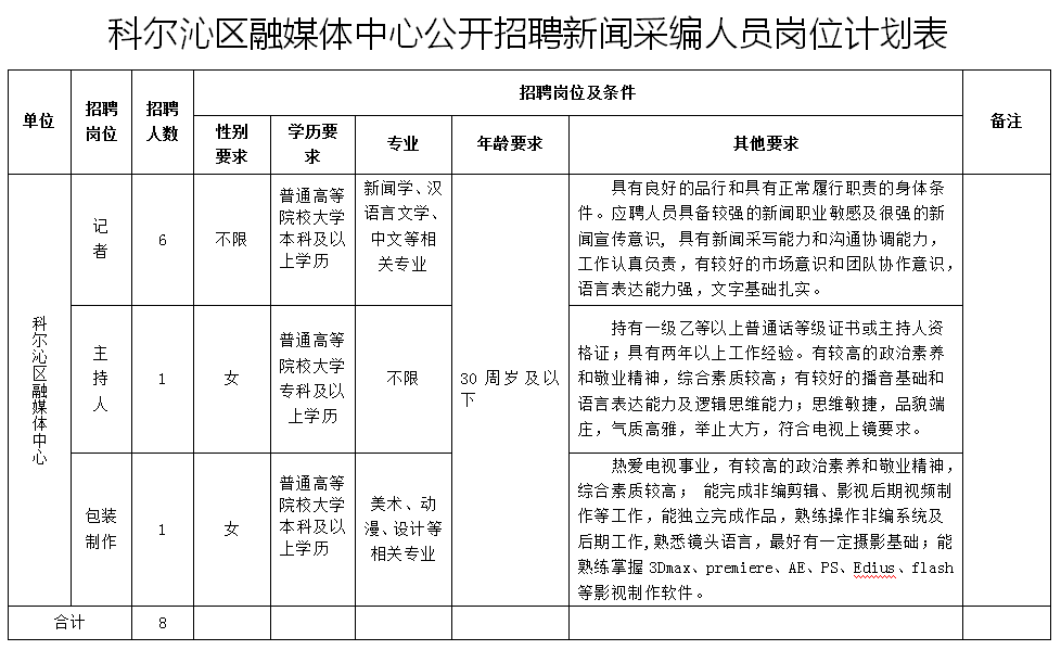 1.科爾沁區(qū)融媒體中心公開招聘新聞采編人員崗位計(jì)劃表
