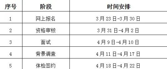 本次招聘流程包括報(bào)名、資格審核、面試、背景調(diào)查、體檢簽約等環(huán)節(jié)。