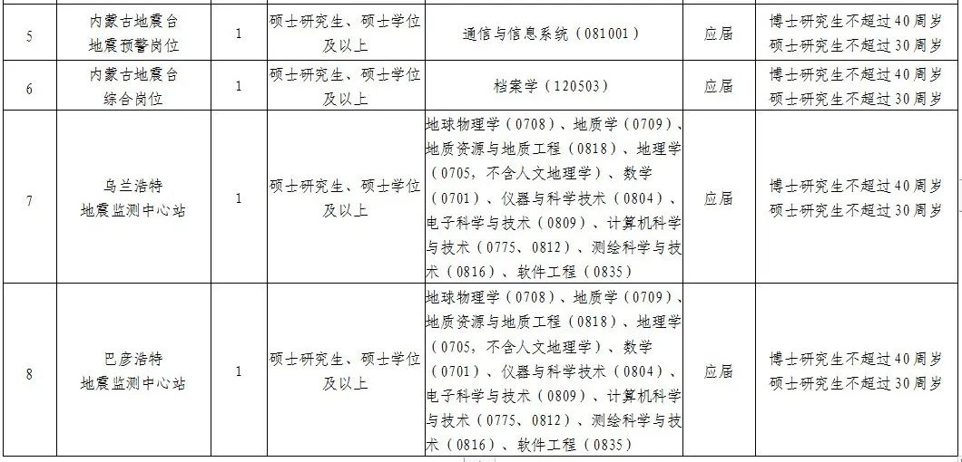 附:內(nèi)蒙古自治區(qū)地震局2022年度事業(yè)單位公開招聘崗位信息表