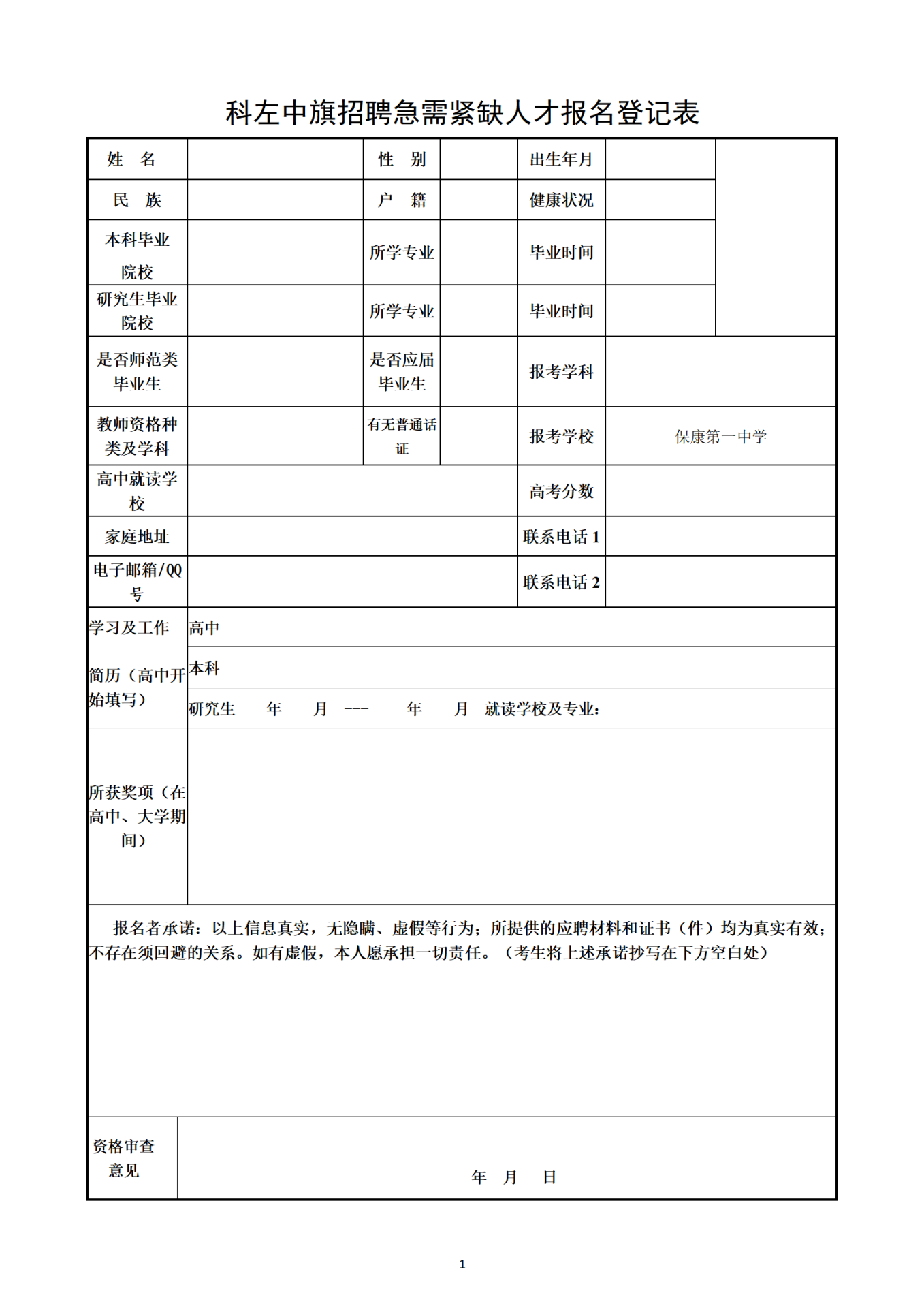 附件:科左中旗2022年“校園招聘”高層次學歷教師報名登記表