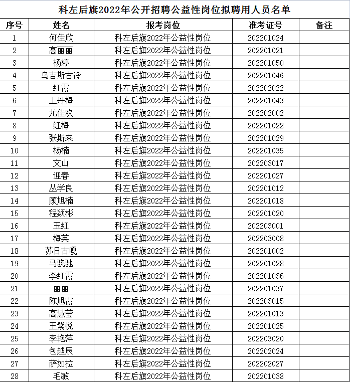 附件:科左后旗2022年公益性崗位擬聘用人員名單