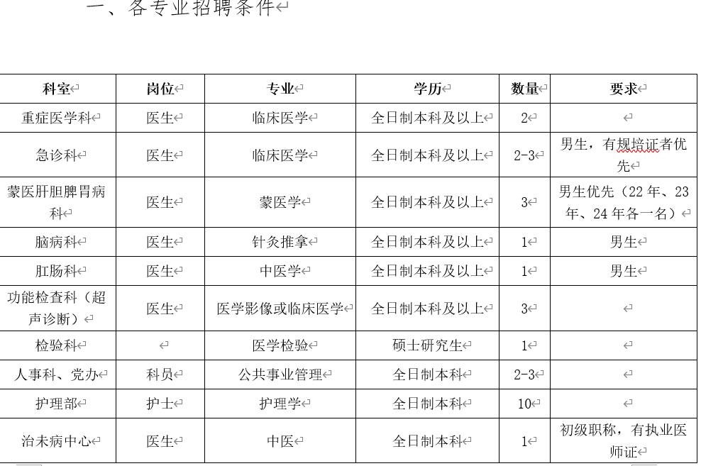 現(xiàn)因工作需要招聘醫(yī)務(wù)人員,歡迎勤勉、敬業(yè)的有識(shí)之士加盟。具體要求如下:
