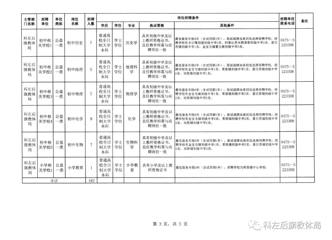 (五)本次招聘方案中其他未盡事宜以及招聘過程中出現(xiàn)的其他問題,由2022年度科左后旗面向公費定向師范畢業(yè)生專項招聘領(lǐng)導(dǎo)小組研究決定,有關(guān)信息將通過科左后旗教體局微信公眾號公布。