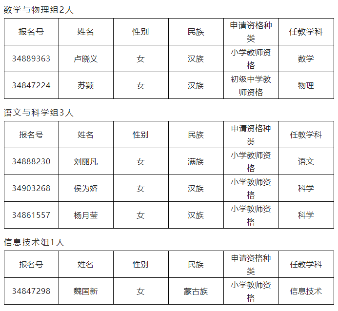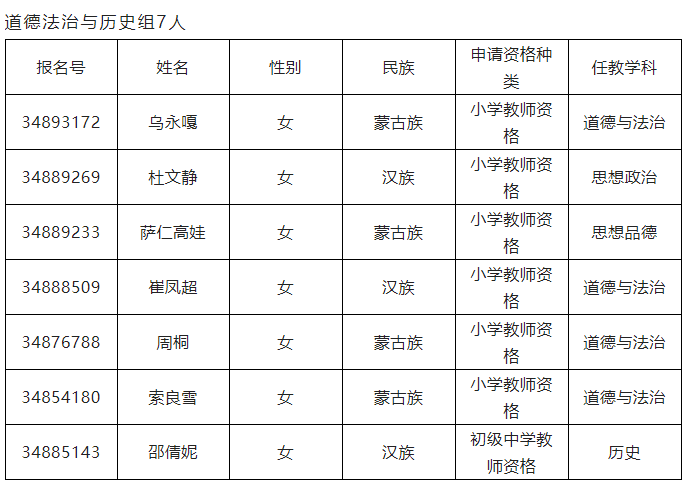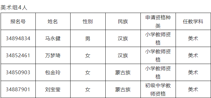 2022年下半年奈曼旗教師資格認(rèn)定非師范類申請人員教育教學(xué)能力測試人員名單