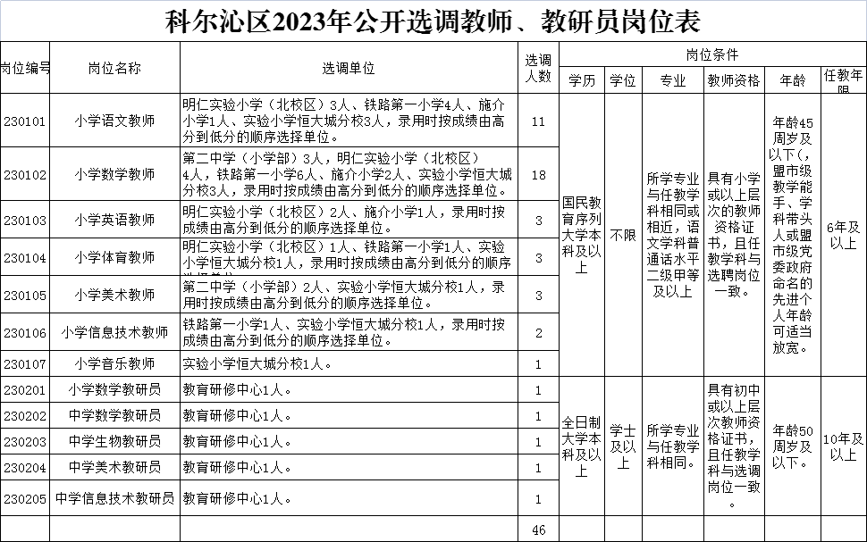 為優(yōu)化和調(diào)整教育資源配置,建立競爭擇優(yōu)的用人選人機(jī)制,經(jīng)區(qū)政府研究,決定面向科爾沁區(qū)在編在崗教師公開選調(diào)41名學(xué)科教師和5名教研員。為確保選調(diào)工作公開、順利進(jìn)行,現(xiàn)將有關(guān)事宜公告如下: