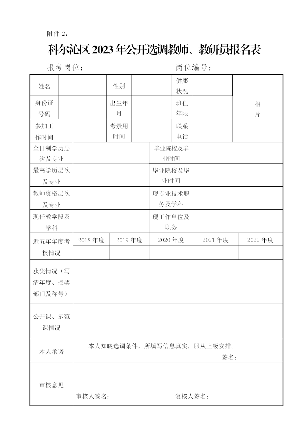 附件2:科爾沁區(qū)2023年公開選調(diào)教師、教研員報(bào)名表
