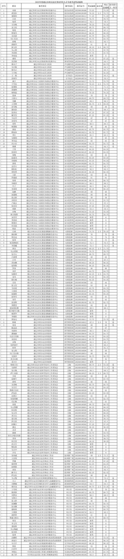 2023年度通遼市科爾沁區(qū)事業(yè)單位人才引進考試筆試成績