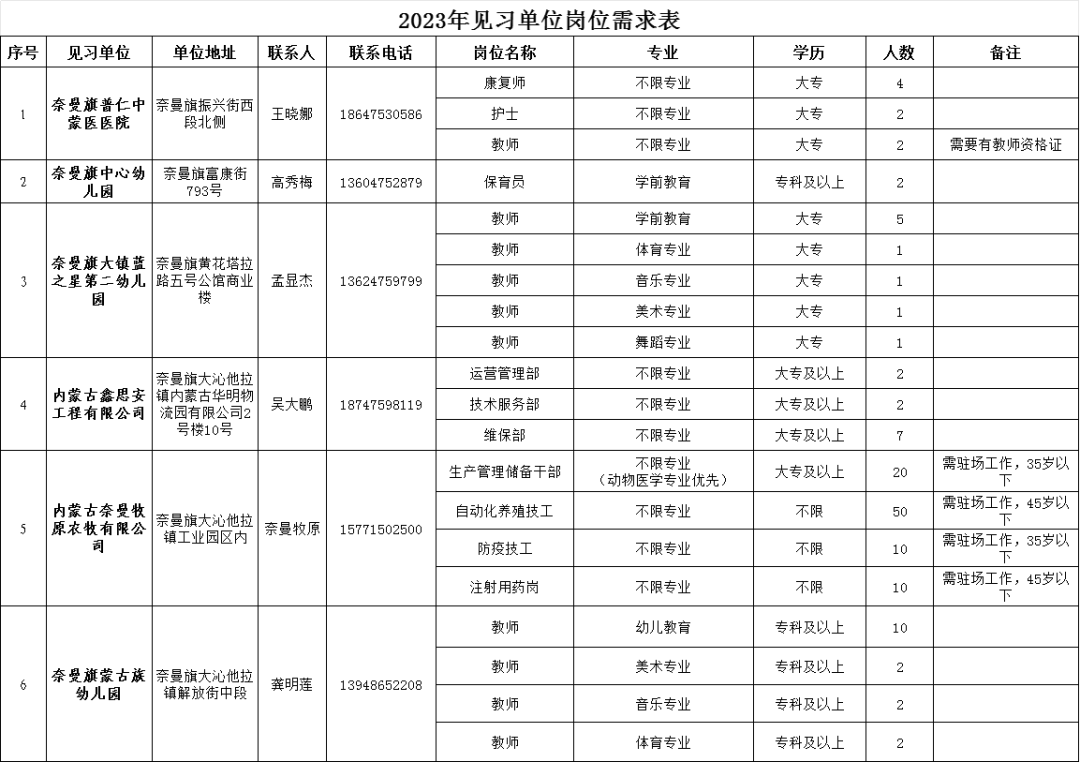 報名采取網(wǎng)絡(luò)報名方式進行。有就業(yè)見習(xí)意向人員請登錄網(wǎng)站(內(nèi)蒙古高校畢業(yè)生就業(yè)管理服務(wù)平臺http://gx.nmrc.com.cn/#/trainneeLogin)進行報名。報名涉及到有關(guān)學(xué)歷、專業(yè)、其他條件等信息需要咨詢時,請聯(lián)系招聘單位(咨詢電話見附件1《2023年見習(xí)單位崗位需求表》)。