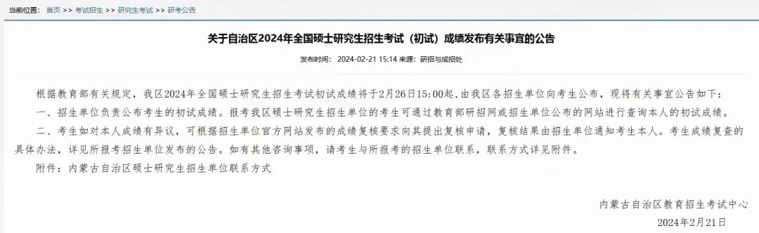 內(nèi)蒙古自治區(qū)考研成績查詢時間2月26日15:00!