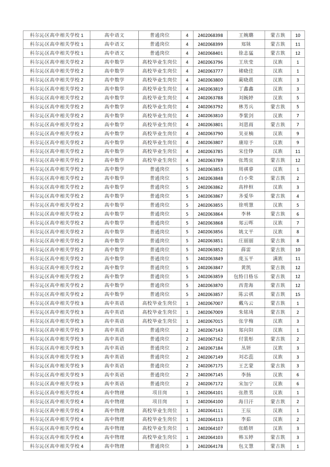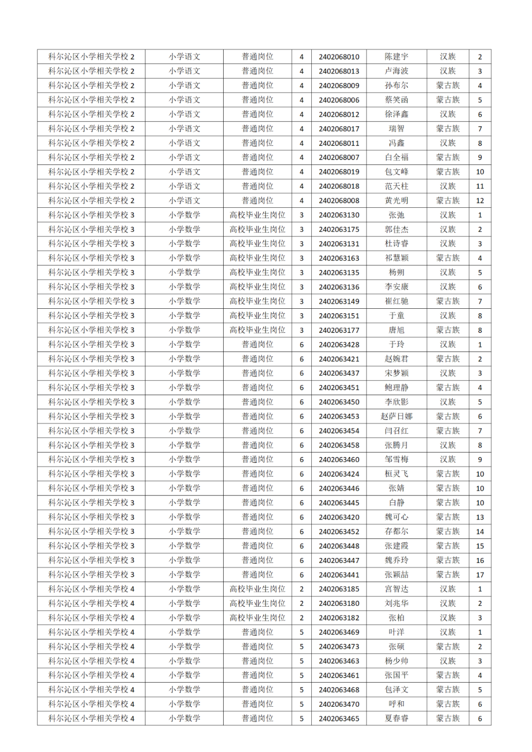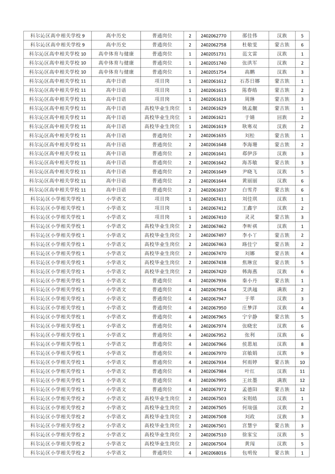 附件:通遼市教育系統(tǒng)2024年度公開招聘工作人員科爾沁區(qū)相關(guān)崗位資格復(fù)審人員名單